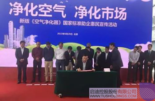2015年9月29日,亞都董事長(zhǎng)龍林作為廠商代表參加空氣凈化器新國(guó)標(biāo)助企惠民發(fā)布會(huì),并在會(huì)上簽訂了“踐行空氣凈化器新國(guó)標(biāo)倡議書(shū)”,這是亞都人對(duì)新國(guó)標(biāo)實(shí)施的承諾。