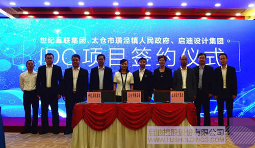 在太倉(cāng)市副市長(zhǎng)胡捷,璜涇鎮(zhèn)黨委書(shū)記吳建國(guó),世紀(jì)互聯(lián)CEO、總裁王世琪,世紀(jì)互聯(lián)副總裁申成鋼,啟迪設(shè)計(jì)董事長(zhǎng)、黨委書(shū)記戴雅萍,啟迪設(shè)計(jì)總裁、總建筑師查金榮等領(lǐng)導(dǎo)的見(jiàn)證下,世紀(jì)互聯(lián)副總裁、華東區(qū)總經(jīng)理蔡春風(fēng)與太倉(cāng)璜涇鎮(zhèn)鎮(zhèn)長(zhǎng)李天一,啟迪設(shè)計(jì)副總裁、董事長(zhǎng)辦公室主任華亮就太倉(cāng)云數(shù)據(jù)中心項(xiàng)目正式簽約。