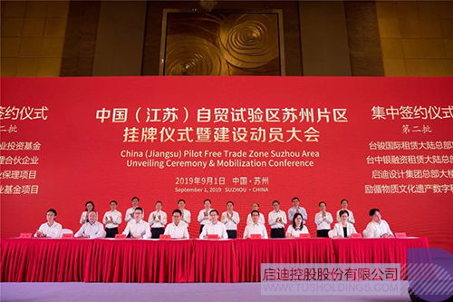 9月1日上午,中國(江蘇)自貿(mào)試驗(yàn)區(qū)蘇州片區(qū)(以下簡稱“蘇州自貿(mào)區(qū)”)掛牌儀式暨建設(shè)動(dòng)員大會(huì)隆重舉行。江蘇省委常委、蘇州市委書記周乃翔,蘇州市委副書記、市長李亞平為蘇州自貿(mào)區(qū)揭牌。大會(huì)現(xiàn)場(chǎng)舉行了包括啟迪設(shè)計(jì)集團(tuán)新總部大樓在內(nèi)的32個(gè)自貿(mào)區(qū)項(xiàng)目集中簽約儀式,啟迪設(shè)計(jì)集團(tuán)董事長戴雅萍、總裁查金榮受邀出席掛牌儀式,戴雅萍董事長作為公司代表上臺(tái)簽約。